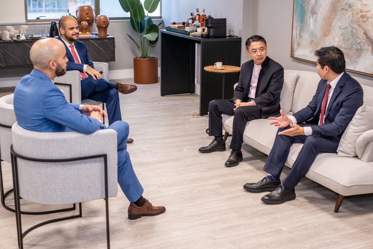 No escritório do Ibrachina, Thomas Law, presidente do Instituto, reuniu-se com diversas autoridades do Brasil e da China. Destaque para a comitiva da Zhejiang International Business School (ZIBS), liderada pelo reitor Ben Shenglin. [Foto abaixo]