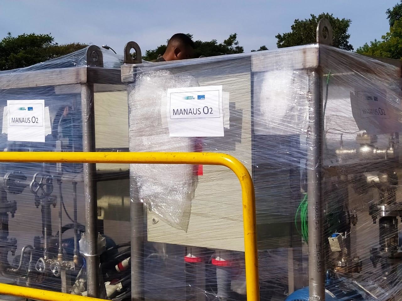O Ibrachina (Instituto sociocultural dedicado a promover a integração entre as culturas e os povos do Brasil, da China e de outros países que falam o idioma português), em parceria com a Força Aérea Brasileira (FAB), realiza o transporte de equipamentos para a transferência de oxigênio líquido – ISO Containers – para os tanques dos hospitais localizados em Manaus, no estado do Amazonas. O foco é abastecer as instituições de saúde que sofrem com a falta do insumo para tratar pacientes com o novo coronavírus.