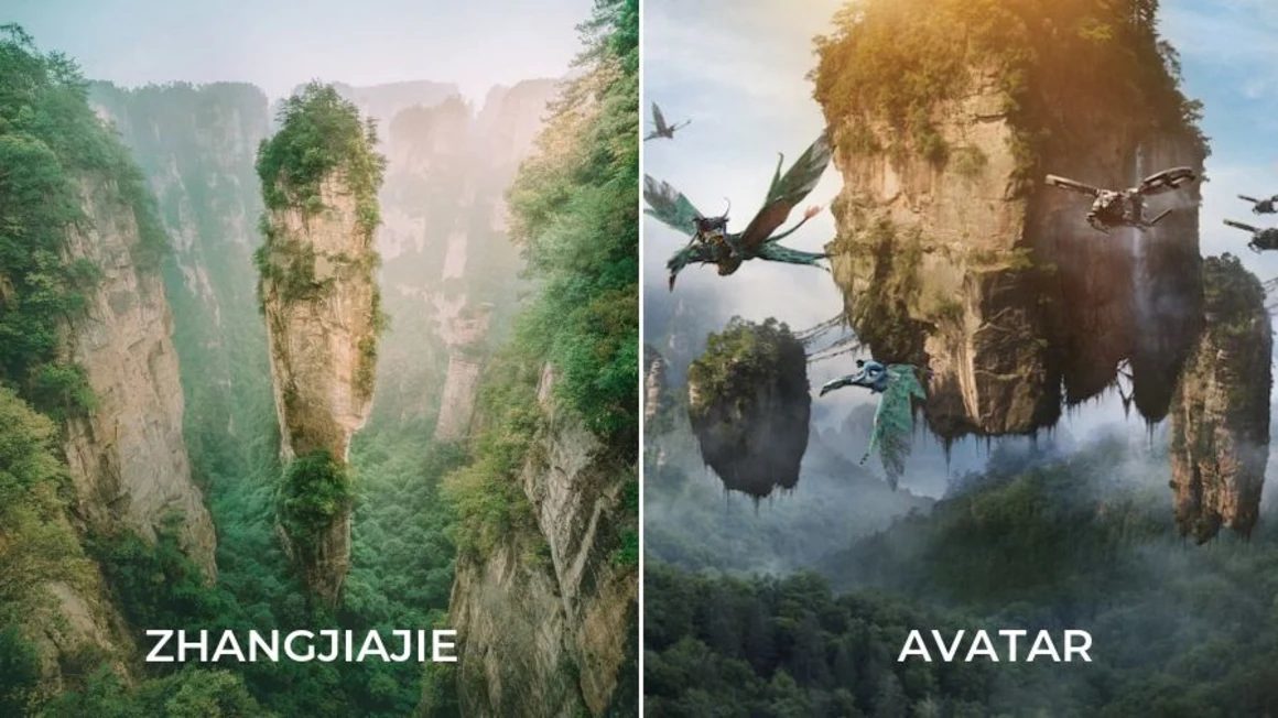 Alguns dos maiores pilares do parque nacional Zhangjiajie, com 1.080 metros de altura, eram conhecidos como “Colunas Celestes do Sul'. Por decisão do governo, em janeiro de 2010 foram renomeadas oficialmente como "Montanhas Aleluia Avatar".