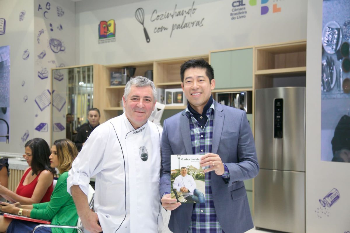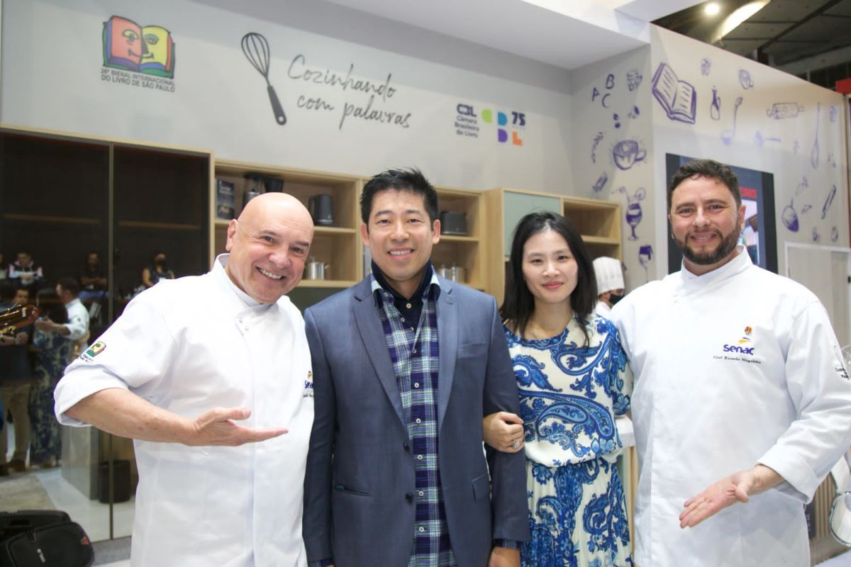Eles foram recebidos pelo presidente do Ibrachina, Thomas Law, e sua esposa, Ana Ou Law, no espaço cultural "Cozinhando com Palavras", que promove a programação Portugal dos Sabores.
