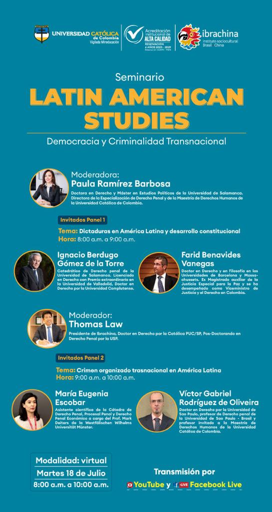O Ibrachina, em parceria com a Universidad Católica de Colômbia, promove, nesta terça-feira (18), o "Seminario Latin American Studies: Democracia y Criminalidad Transnacional".
