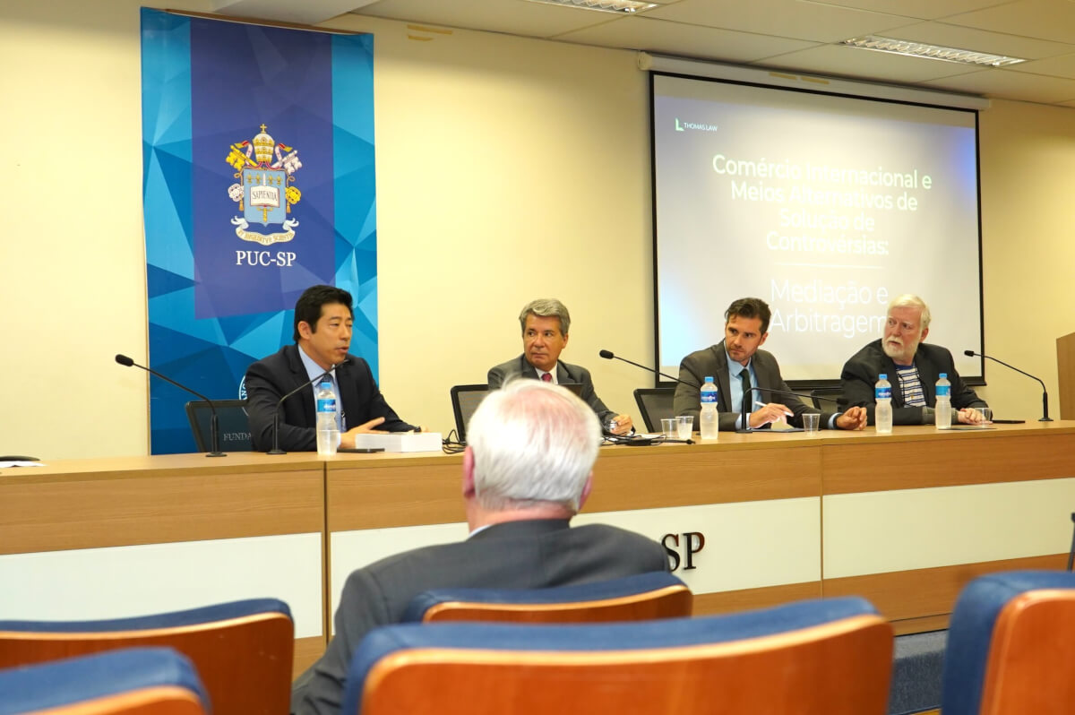 O Seminário Internacional de Negociação, Mediação e Arbitragem no Comércio Exterior (SIMAEX) foi realizado pela primeira vez em São Paulo. O encontro desta quinta (2) teve como tema “Novas Fronteiras da Arbitragem e Mediação no Comércio Exterior”. Thomas Law, presidente do Ibrachina e do IBCJ, foi um dos painelistas do evento no campus Monte Alegre da PUC-SP, falando sobre “As Novas (velhas) Fronteiras do Comércio Internacional”. Também falaram o professor argentino Miguel de Dios, da Universidad del Salvador, e Wagner Parente, sócio do escritório Barral Advogados.